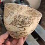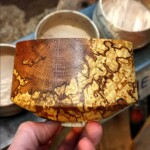 This is one method, also called “twice turning”, it gives us perfectly circular bowls of any thickness we like. There is another method called Green Turning. You could be taking a walk in the forest in the morning, pick up a fallen branch and eat a salad in a bowl made from it for dinner. In green turning we use fresh wood, turn it immediately into a (very) thin-walled bowl that dries after it’s created. As it dries it will twist and turn until it takes a unique shape. We know how to predict it but still surprises are more common than not. It is a fast process but requires good technique and knowledge of the wood. Of course there is no uniformity but that’s what we love about it!