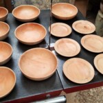 We are in contact with foresters, municipality tree surgeons and farmers and through them we have a steady supply of timber without ever cutting a living tree. I have to admit, fallen trees are not a sad sight for me anymore, I shamelessly see bowls and platters after a big storm.