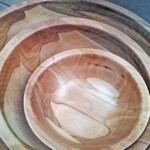 A spectacular technique where subsequent bowls of increasing size are scooped out of the same bowl blank. This way we don't waste the interior wood of a bowl making a mountain of woodchips but rather a family of similarly grained bowls.